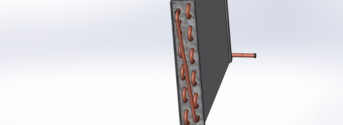 With precise simulation, a heat exchanger design was finalized and a single circuit was proposed. The heat exchanger was designed with a thermal break of 1mm between the rows of tubing.